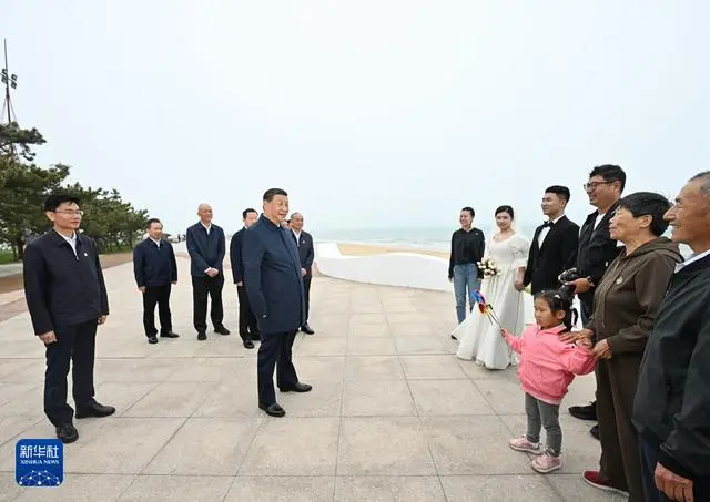 5月22日至24日,中共中央总书记、国家主席、中央军委主席习近平在山东考察。这是22日下午,习近平在日照市阳光海岸绿道同市民和游客亲切交流。 新华社记者 谢环驰 摄