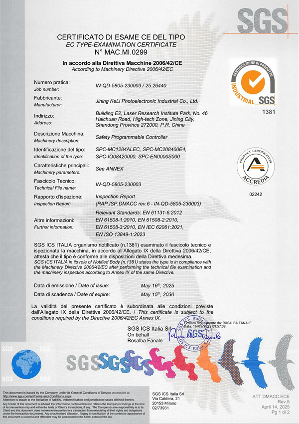 SPC安全控制器-功能安全证书