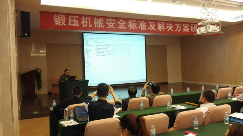 会议上,公司常务副总李海明经理详细介绍了科力光电公司的基本情况及发展方向,并真诚希望能与各参会公司建立长久的合作关系。随后,东风汽车商用车车身厂安技科邹科长就科力光电公司安全产品在其公司的使用情况及积极影响做了详细报告。会议还邀请了济南铸造锻压机械研究所专家对锻压机械安全相关标准进行了解读。最后,技术部长邵光存发布了公司最新研发的新产品,其中包含LSPD型安全激光扫描仪、BLPS型折弯机用安全保护装置等,现场展示了产品功能及用途,并对相关领域机械安全解决方案做了详细汇报。