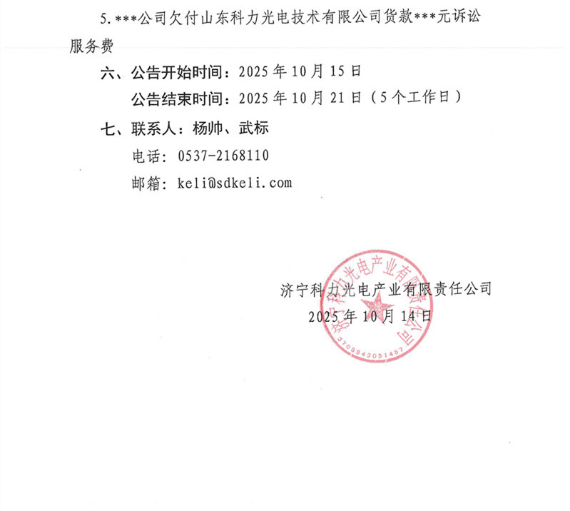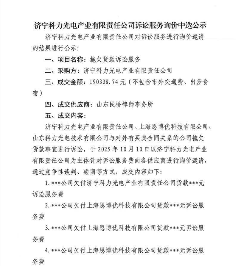 济宁科力光电产业有限责任公司诉讼服务询价中选公示