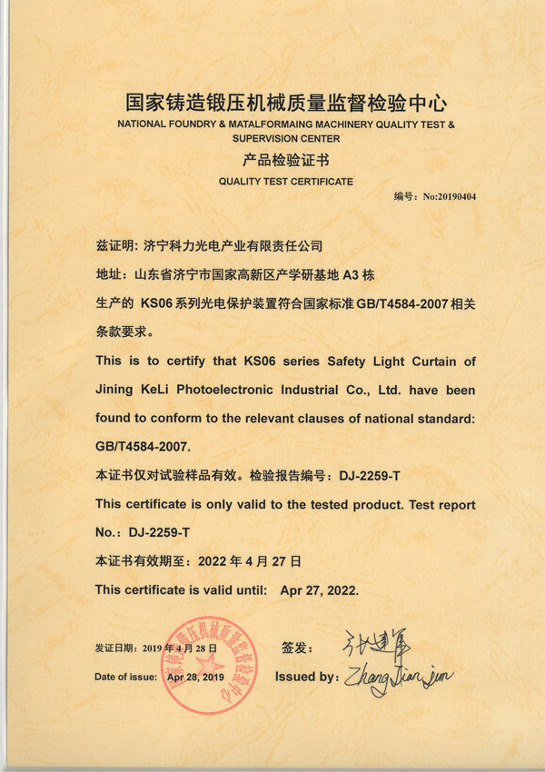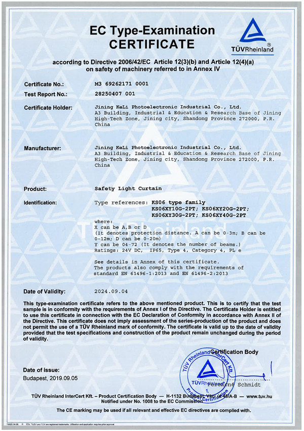 KS06安全光幕-MD指令证书