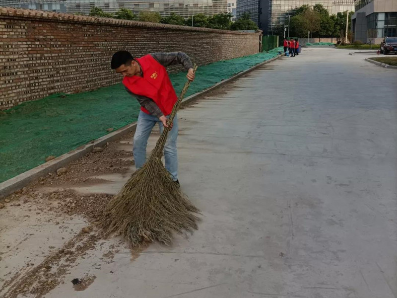 活动开始后,志愿者们手持笤帚、扫帚、捡污夹、撮子、垃圾袋,拉着垃圾箱,认真清理了零散漫布在园区办公楼、生产区、绿化区和道路上的烟头、碎塑料膜、塑料袋、塑料泡沫、破烂包装物、碎玻璃、砖块和泥土等。大家积极发挥奉献精神,老党员以身作则,不怕脏不怕累,深入花池中,认真清理内部隐藏的垃圾,年轻党员和入党积极分子、团委代表争先恐后,团结协作,体现了共产党员、入党积极分子、共青团员们斗志昂扬的精神风貌。在大家团结协作的共同努力下,园区环境面貌焕然一新。此时虽然大家都大汗淋漓,但大家的脸上都洋溢着灿烂的笑容。